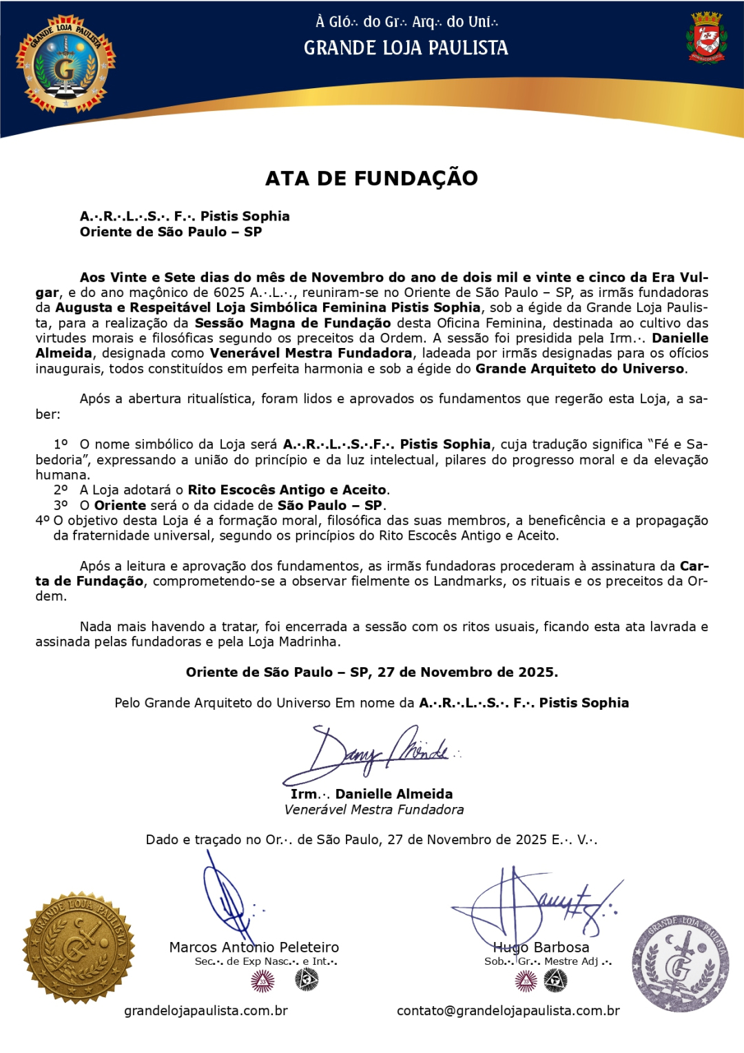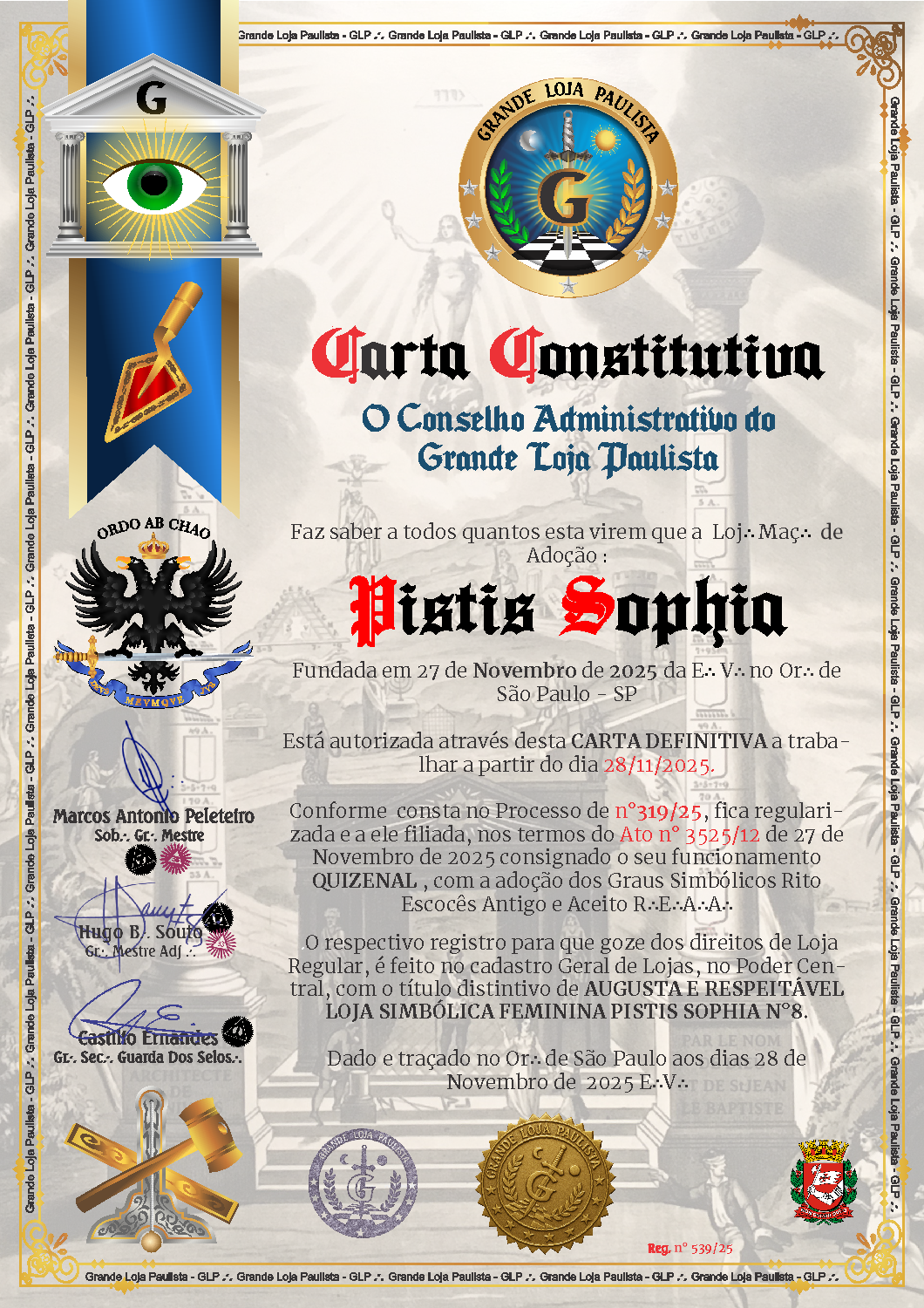 O nome "Pistis Sophia" estabelece a Loja não apenas como um local de reunião, mas como um coração que acolhe todas as nossas irmãs com o objetivo de despertar a consciência para construir um mundo e uma família melhor.